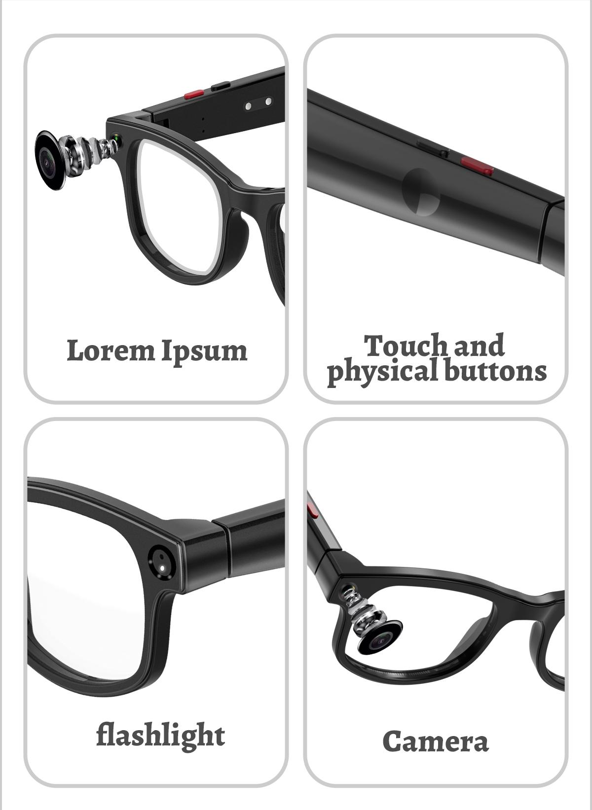▪Equipped with a -new 500w ultra-wide-angle camera and a dual-mic system,these glasses accurately capture everything you see and hear,Shoot high-quality photos and immersive videos.