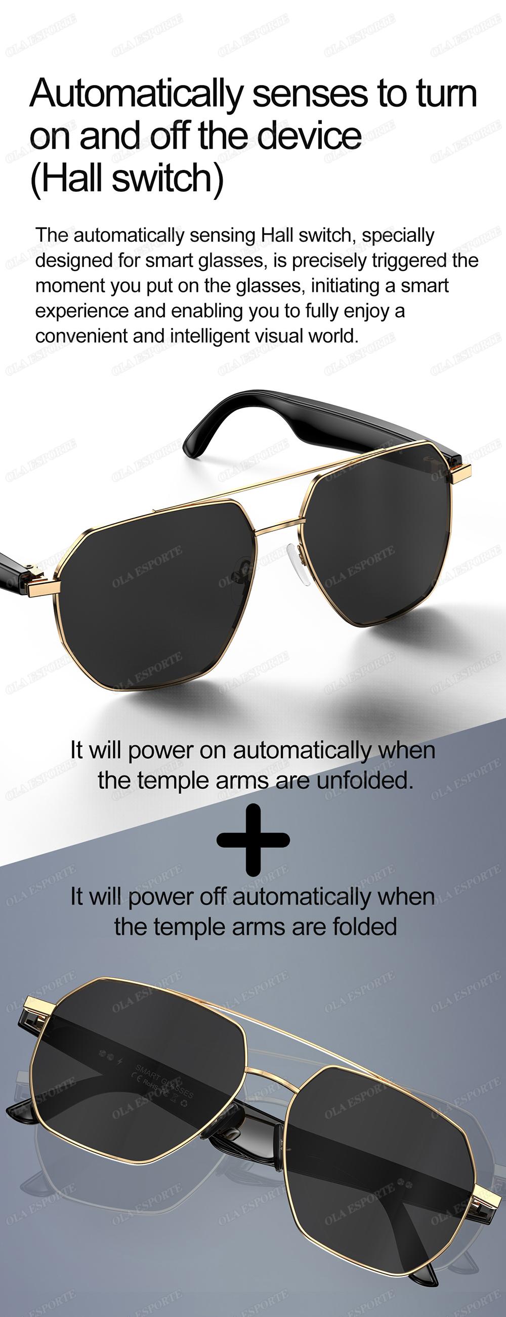 Intelligent Hall-Effect Sensor:The smart glasses come with an intelligent Hall-effect sensor that automatically turns the device on/off when you put them on or take them off.