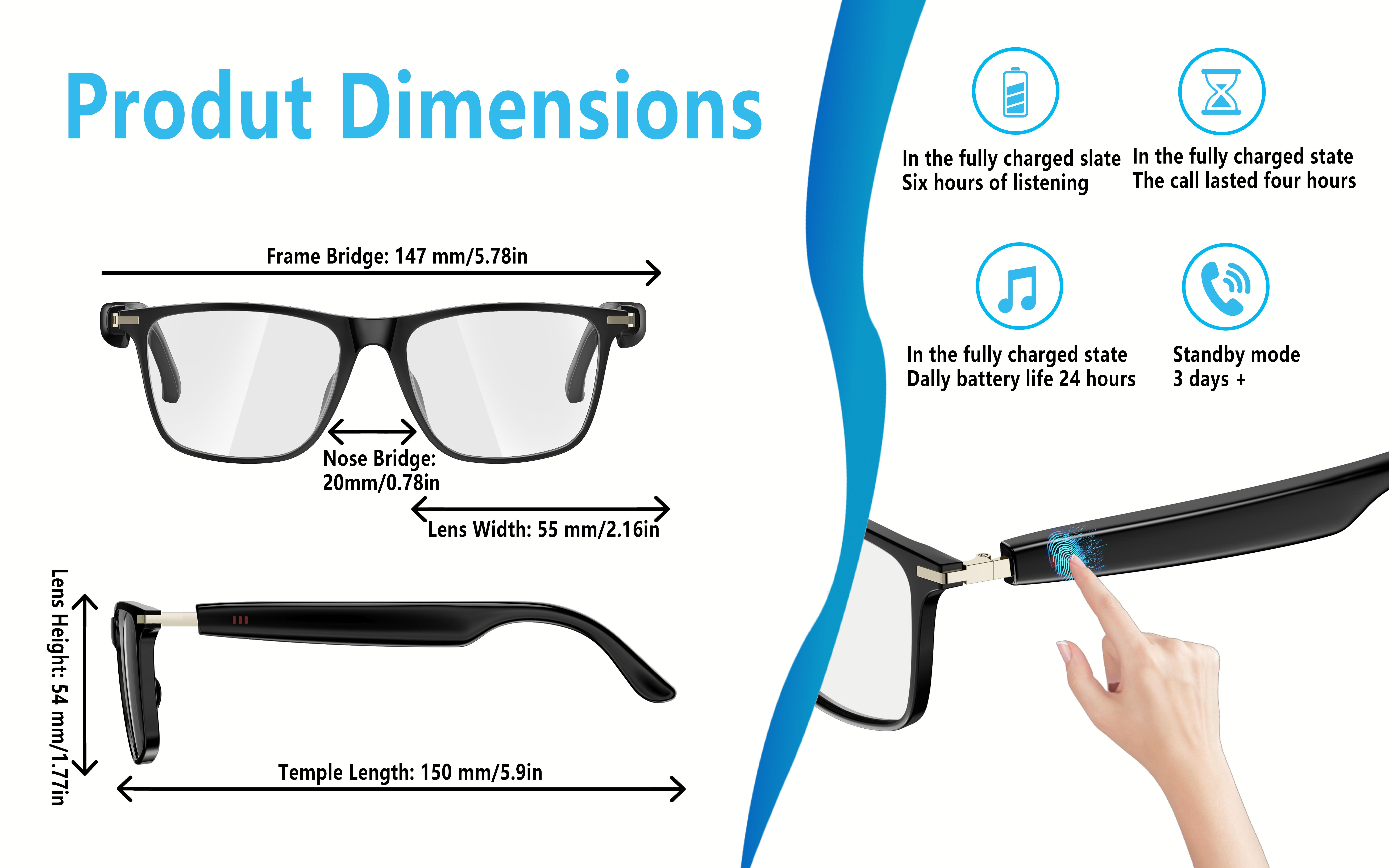 Smart AI translation glasses, real-time app translation in 164 languages, photochromic lenses, flat gray-black lenses.