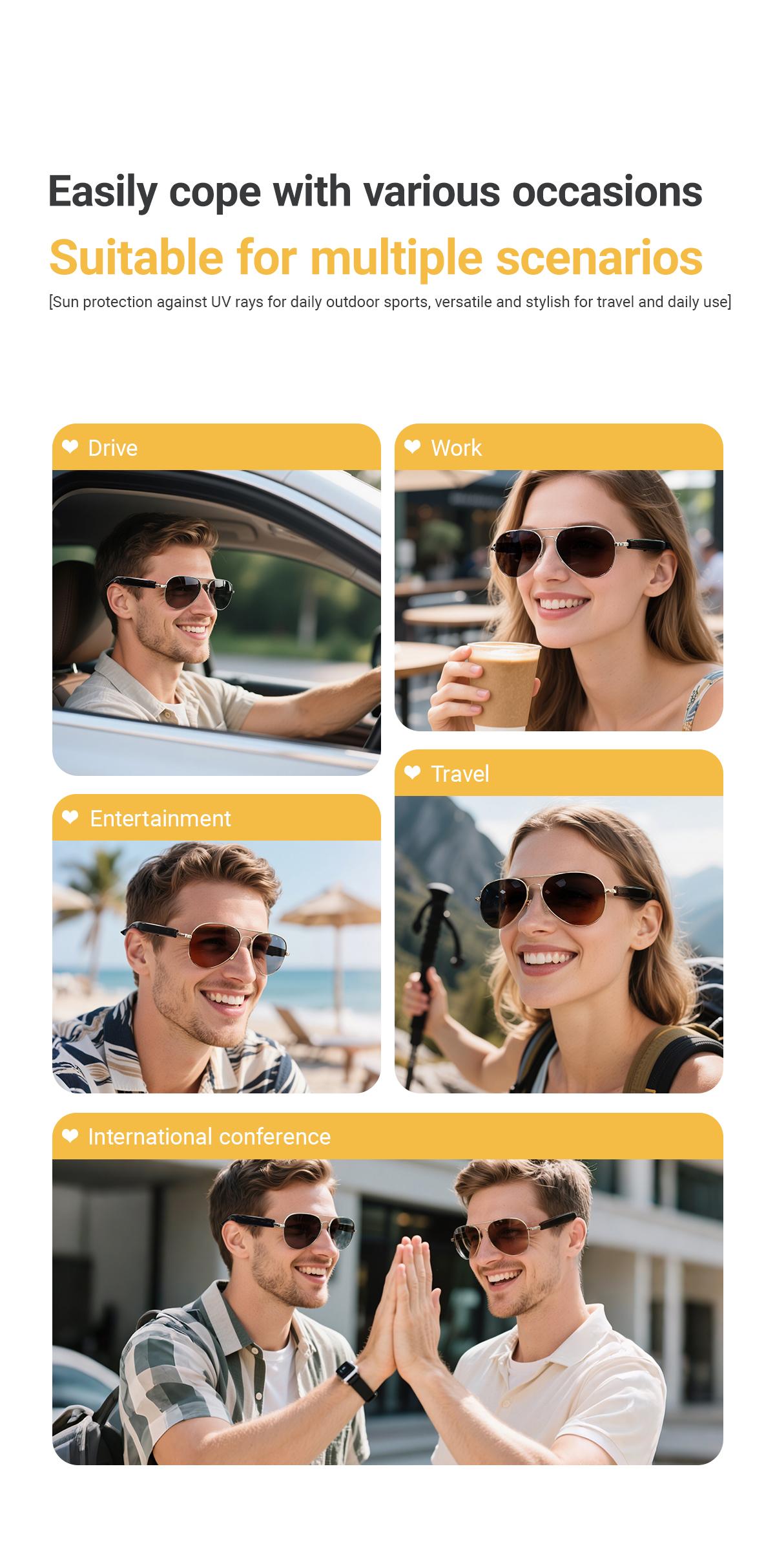 * Smart Glasses Design and Lightweight 38g(excluding lenses): Design has a lightweight 38g made, making it perfect for all-day wear.