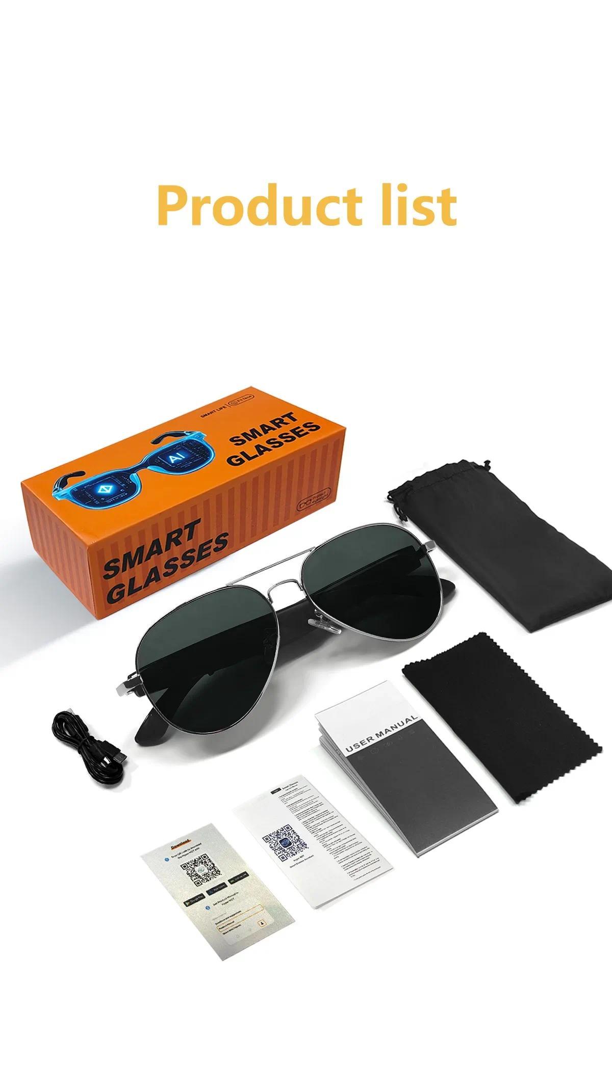 Main control chip:AB5656C Battery:55mAh+55mAh Charging way:Dual Type-C charging Bluetooth version:BLE5.4 Bluetooth protocol:A2DP,HFP Mode of operation:Touch Transmission distance :10M Waterproof level :Life waterproof Material :ABS+PC+Metal Voltage :DC5V Electric current:55mA*2 Play current (max volume) :22mA Standby current :1mA Lens Material:PC coating Size :167*72*53mm Weight :Glasses38g + packing box 112g = 150g Outer box specifications :410*346*340mm 50pcs/8.8KG Language English Functions:Bluetooth calling/music playback/games/multi-style menu/voice assistant/weather/remote camera/AI translation LENS EFFECT :Anti-ultraviolet USE CASE:Drive Cycling Mountain climbing Fishing Travel Businesst Daily Packing:Smart Glasses charging cable, storage pouch, cleaning cloth, user manual, packaging box
