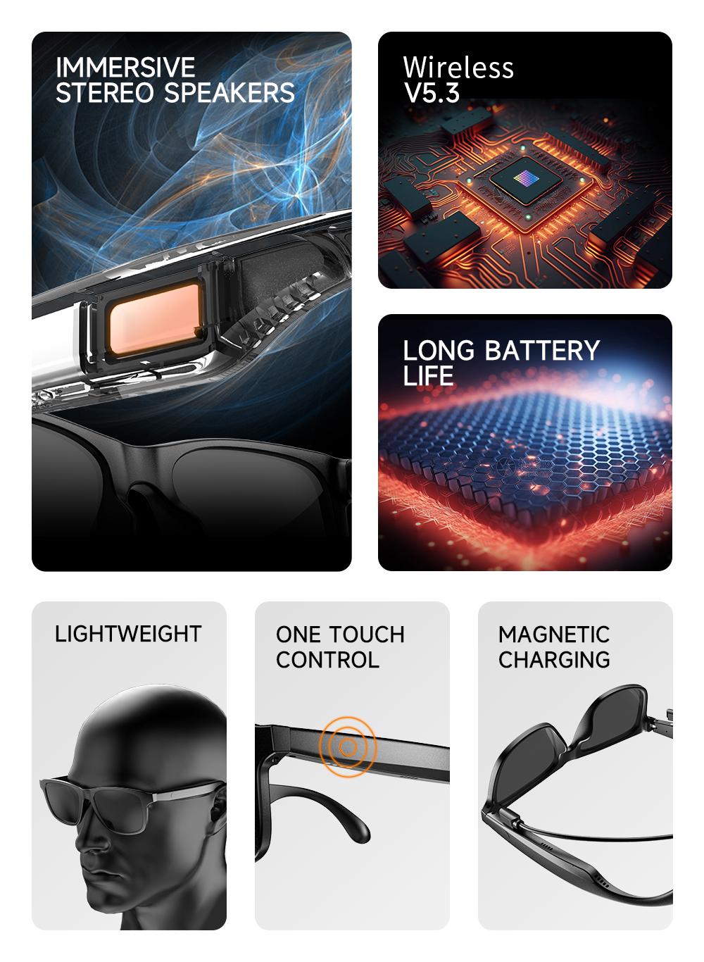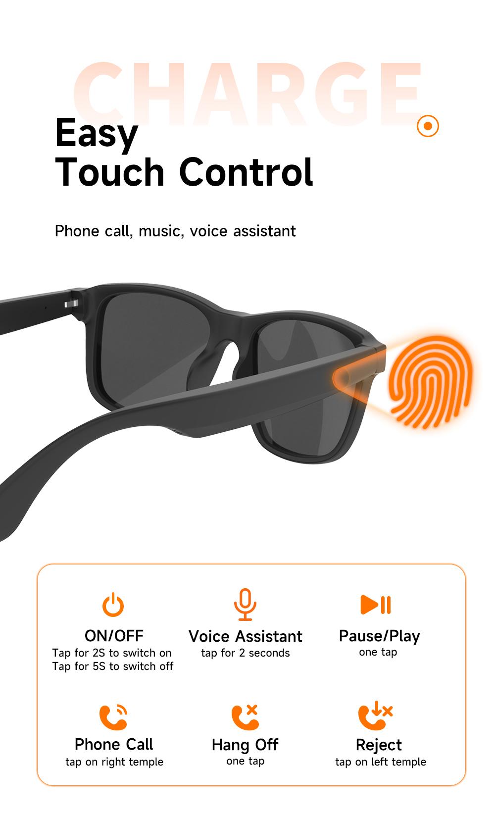 New smart glasses, support voice call, listen to music, touch operation, fashion wear, sunglasses lenses eye protection