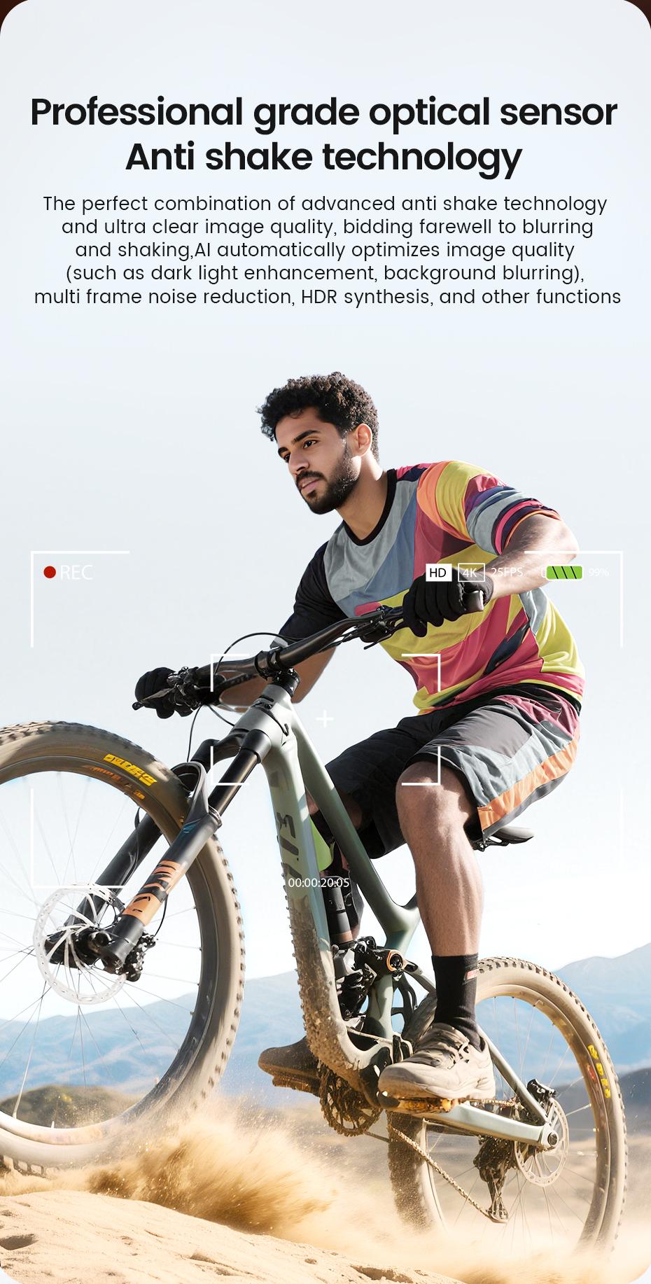 AI Smart Glasses Recording: Capture life's moments with 800W pixels, 3200W pixels photos, and 1080P video on these AI smart glasses.