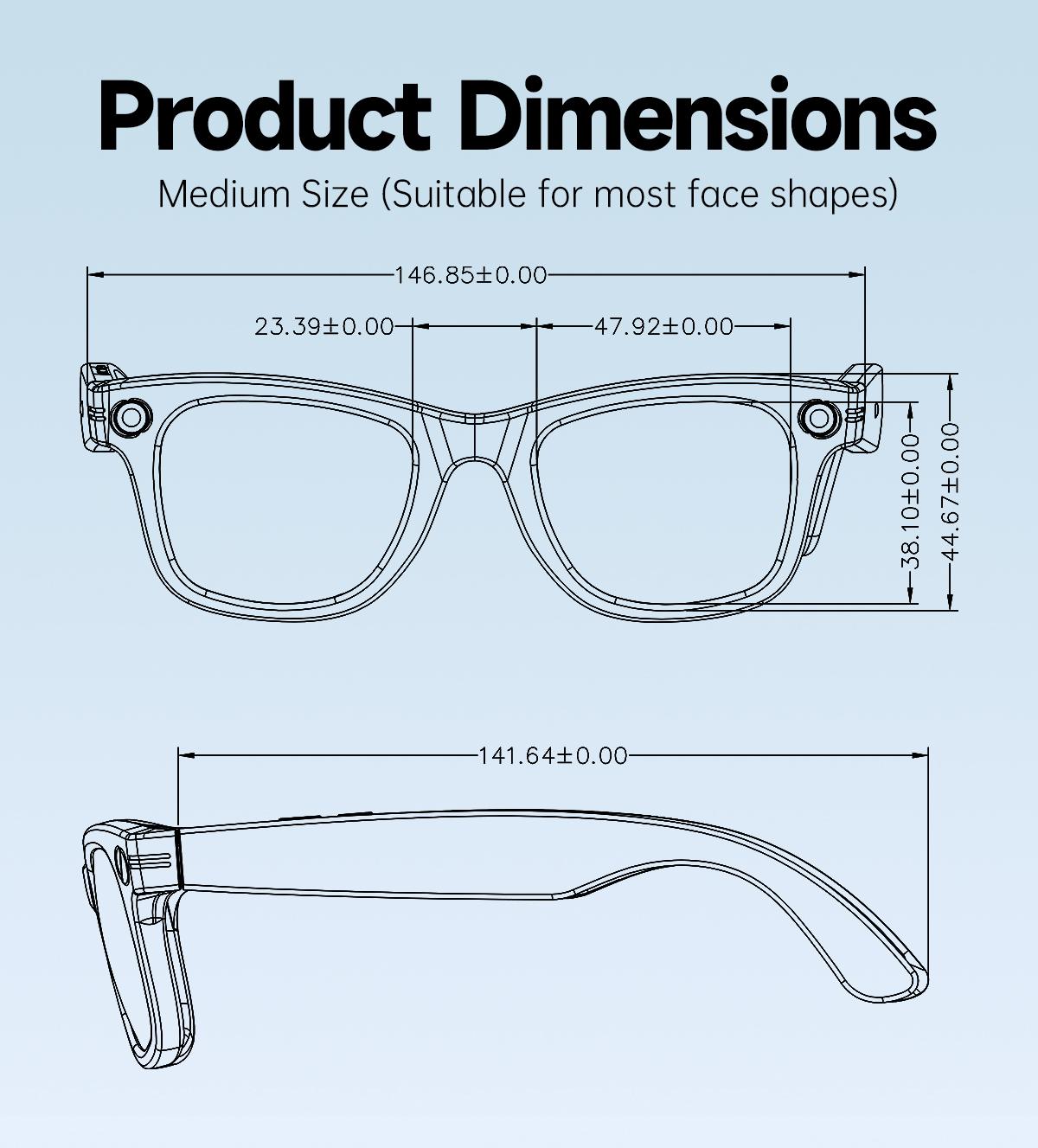 ⭐Battery Type:High density polymer lithium battery ⭐Battery Capcaity:290mAh ⭐Charging Type:Magnetic charging ⭐Endurance Time:Play music for about 12 hours, standby for 7+days ⭐Manipulation Mode :Material button+touch control, synchronized mobile app ⭐Language APP supported languages: Simplified Chinese, English, Spanish, French, German, Italian, Japanese, Korean, Portuguese, Russian, Arabic, Hindi, Traditional Chinese (13 languages)。 AI translation supported languages: Chinese, English, Japanese, Korean, Cantonese, German, French, Russian, Italian, Spanish (10 languages) ⭐Color:The black frame is available with blue light-blocking lenses, sunglass lenses, and photochromic lenses. The white frame comes with red-coated lenses, totaling 4 lens configuration options. (The lenses are detachable, and customized lenses such as myopic lenses are also available.)