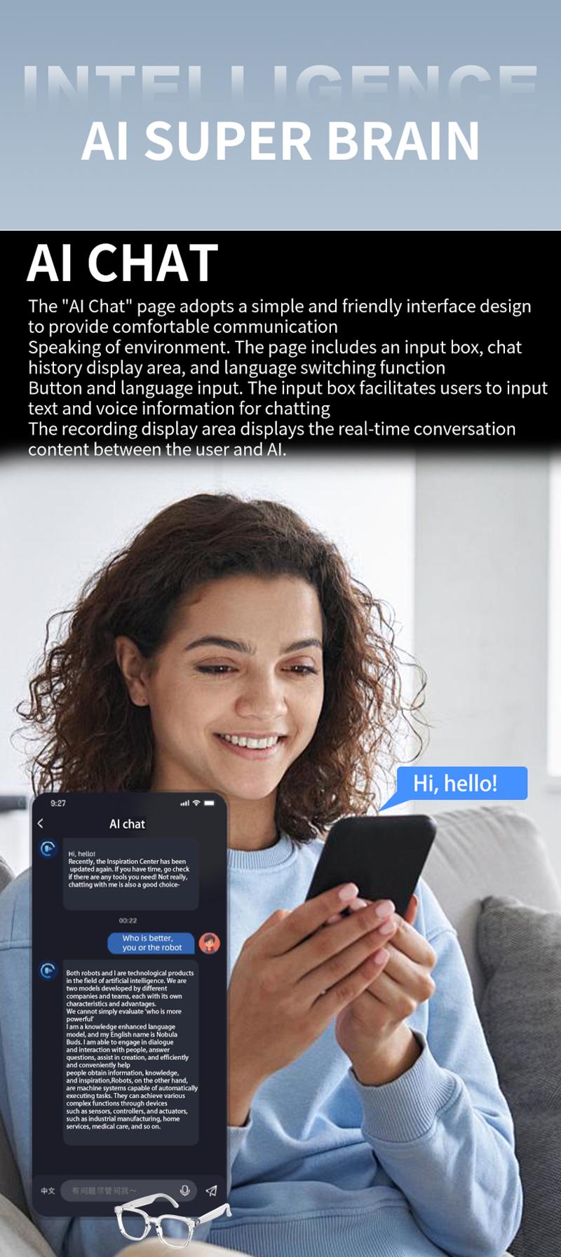 AI Smart Translation Bluetooth Glasses