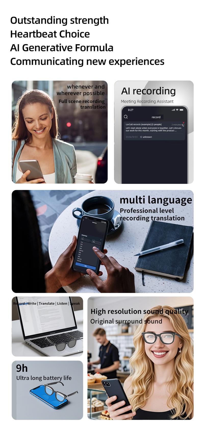 AI translation, AI conversation, AI office, music playback, phone calls, smartphone camera control, smartphone voice assistant control
