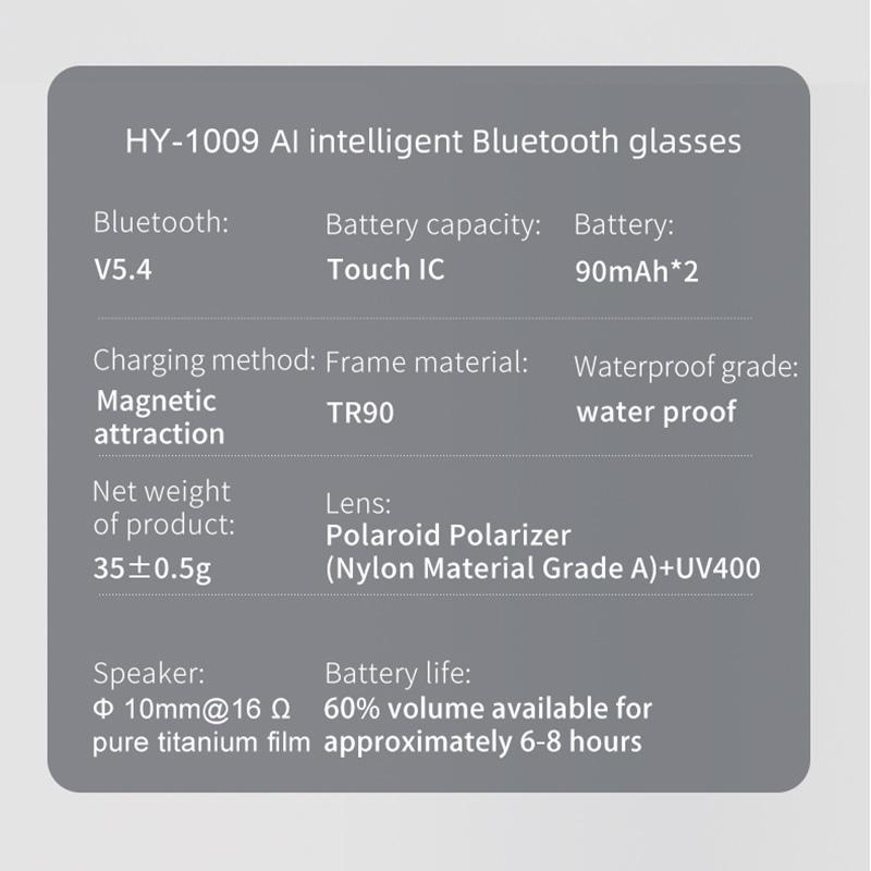 Smart Glasses*1, Cleaning Cloth*1, Storage Pouch*1, English/Chinese Manual*1, DC Magnetic Charging Cable*1