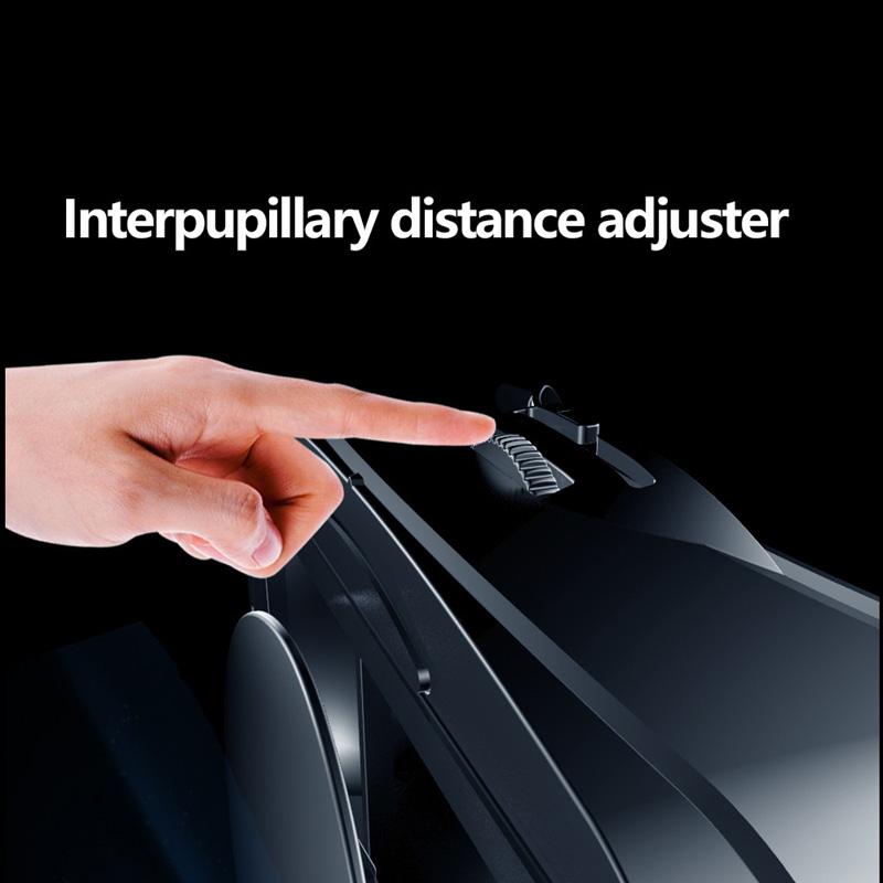 Features: The product is a 3D glasses combining watching movies and playing games, which can turn the mobile phone into a cinema /3D game hall.The product does not need to be charged. Put the mobile phone into the VR glasses, download 3D video, orange VR and other mobile phone players to watch 3D movies online or cache for free. Independent lens adjustment, adjustable knob for pupil distance, object distance adjustment, myopic people available It can be used together with the handle to experience panoramic immersive 3D world Removable sponge eye mask, soft and comfortable to wear, natural fit, easy to clean. Light body, the appearance is not only simple atmosphere, but also convenient to carry. Description: Color: Black Material: PC Model: VRG PRO Main feature: 1. With detachable [large screen frame], large and small screen mobile phones are available (maximum support for 7 inch screen mobile phones). 2. With 120 degree wide-angle lens, the immersion is better.Myopia within 800 degrees can be viewed with naked eyes 3. 5~7 Inch mobile phone is compatible 4. Full screen vision, no more black box effect when watching movies Packing list: 1 X VR glasses 1 X Glasses cloth 1 X Manual ADJUSTABLE WITHIN 800 DEGREES OF MYOPIA Myopia can be adjusted within 800 degrees and myopia users within 800 degrees can be seen naked without wearing glasses. Myopia can be used with naked eyes within 800°