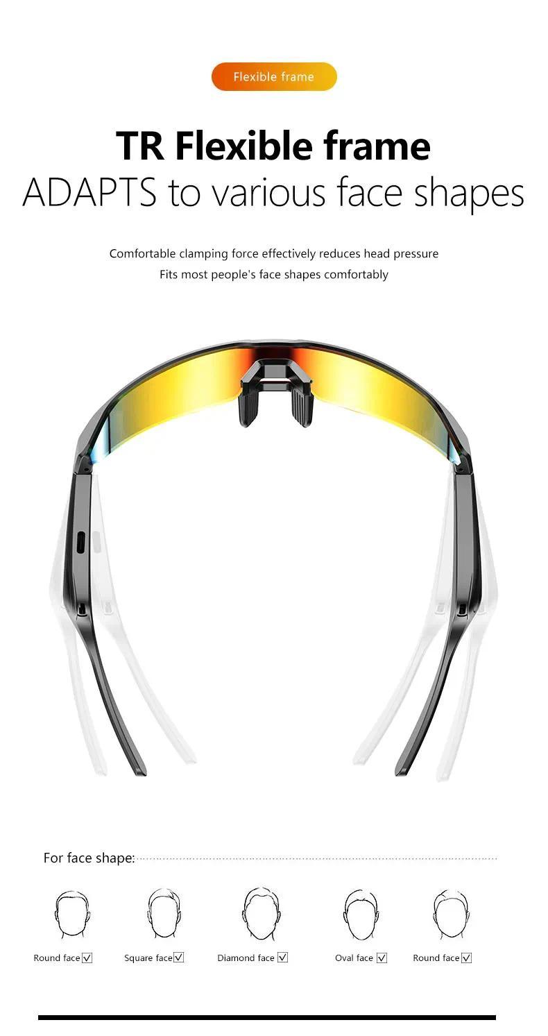 * Humanized Design: Soft nose bridge design, more suitable for face shape, more comfortable to wear. Frame wind guide design, tough lens, impact resistance, reduce the feeling of stuffiness during riding. TR tough frame, comfortable clamping force can effectively reduce head pressure, suitable for most people's face shape. * Dual bluetooth: Using Bluetooth connection, cool Bluetooth 5.3 chip technology, performance upgrade, lower power consumption, longer battery life, smarter algorithm. * Multi-function & simple operation: Smart Bluetooth glasses can answer or reject calls, play and pause music, and wake up voice assistants. Just press and hold the button for 2 seconds to turn on, and press and hold for 5 seconds to turn off. Click the button once to answer or hang up the call, and press and hold for 1.5 seconds to reject the call. When the music is playing, click the button once to play or pause the music. When the music is playing, press and hold the button for 1.5 seconds to wake up the voice assistant. * Ultra-long battery life: using TYPE-C charging interface, built-in 130mAh large battery, charging time is about 1 hour, can be used continuously for 4-5 hours, and can standby time up to 50 hours, no longer have to worry about running out of power. * Wide range of applications: UV400 filters ultraviolet rays, which can effectively reduce damage to the eyes. It is suitable for mountaineering, seven-star, fishing, running and leisure and other use environments.