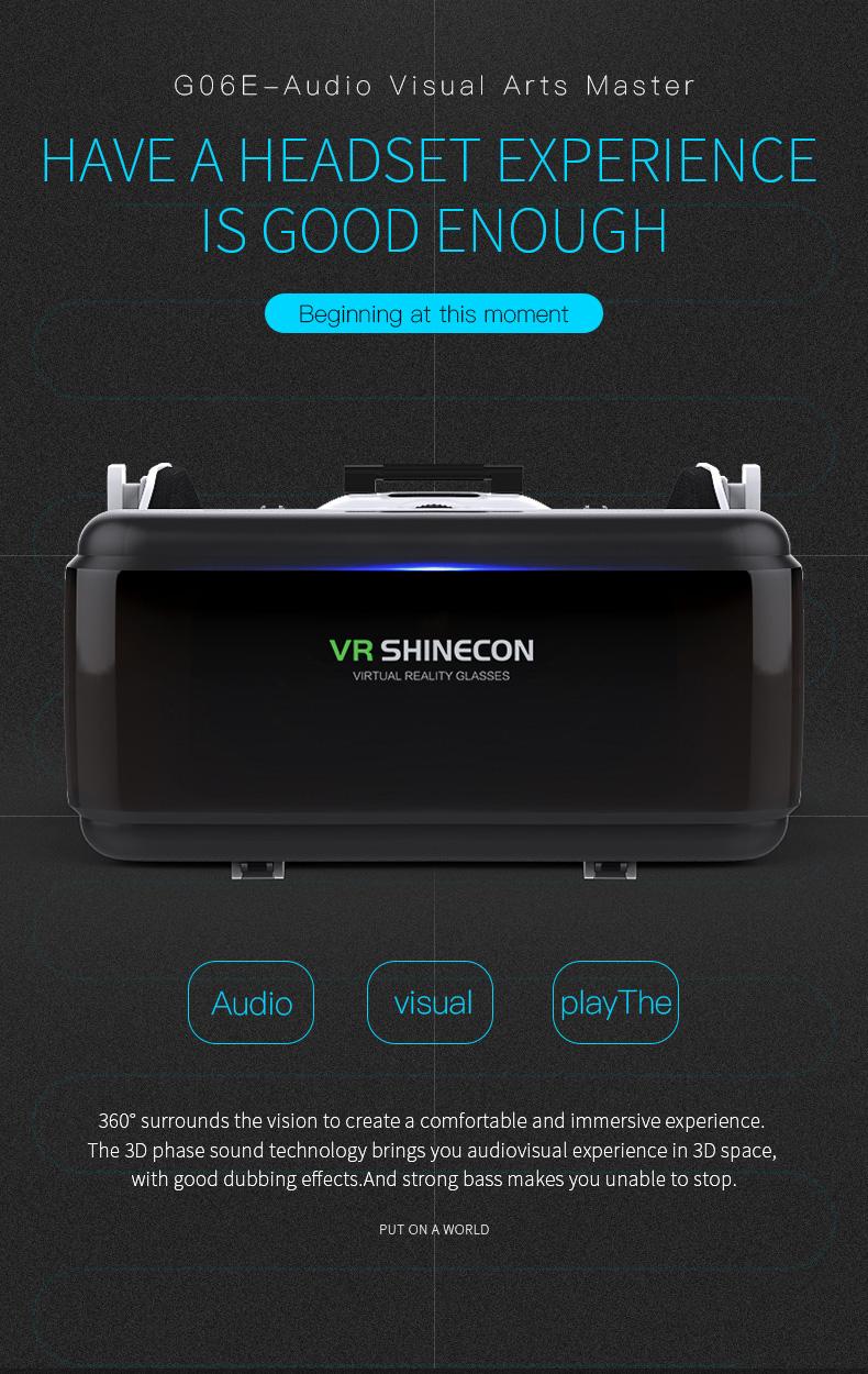 VR SHINECON G06E 3D virtual reality VR head-mounted glasses for 4.7-6.53 inch smartphones with adjustable interpupillary and object distance focal length settings that allow nearsighted people to clearly enjoy the 3D virtual world. Adjustable and flexible headband mirrors for VR SHINECON 3D glasses The button of the box adopts an adsorption switch design, a convenient and firm elastic band design, and the 3D glasses lens that is convenient to wear on the head reduces the impact on particles, that is, the use of a large screen optimizes VR