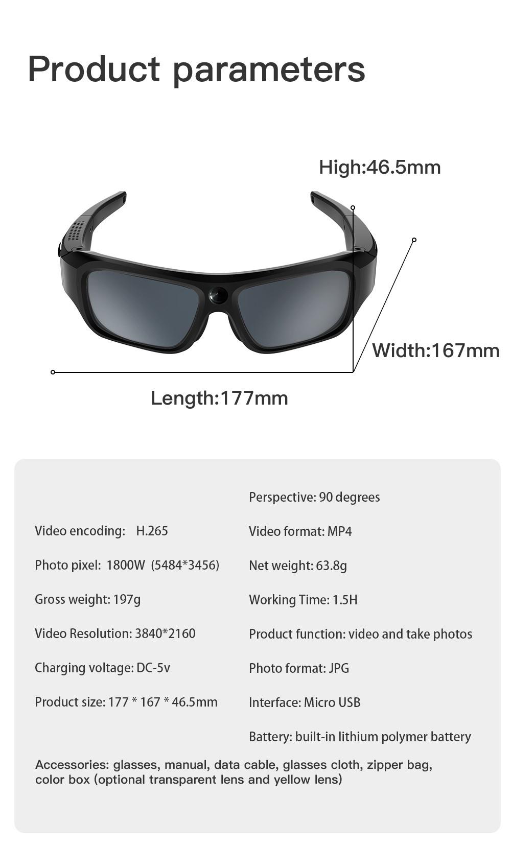 4K HD Glasses Camera Video Driving Record Cycling Video Smart Glasses With Eyewear Camcorder For Outdoor Mini Camera