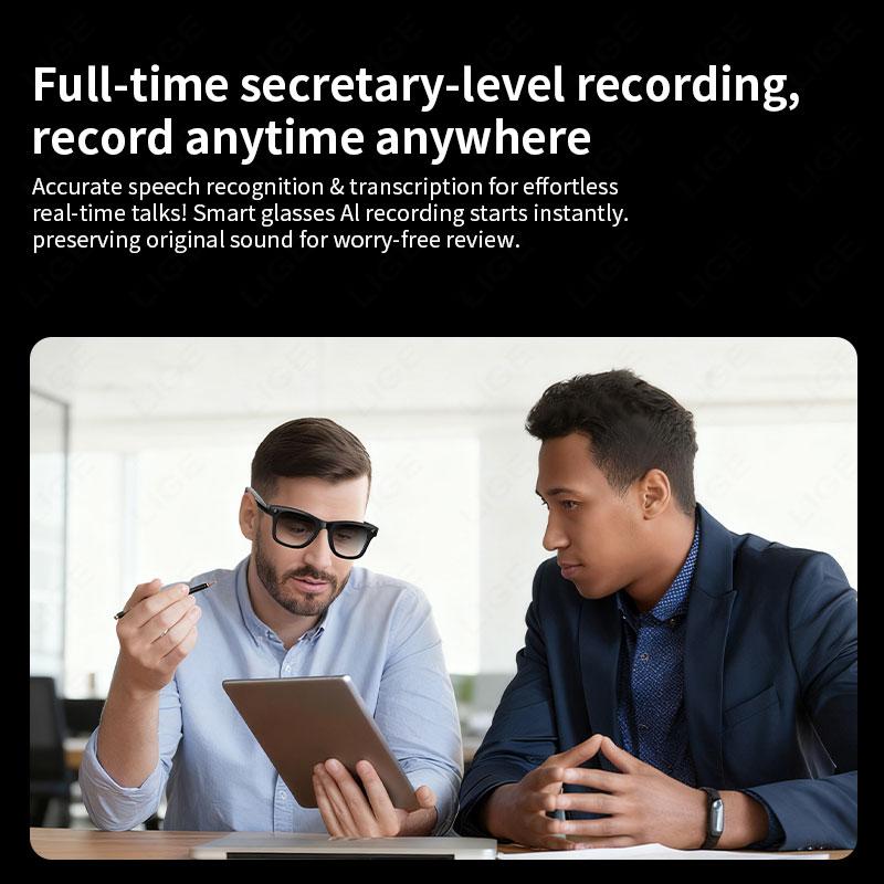 LIGE New 500W Camera Glasses Bluetooth Smart Glasses with Camera Voice Call Music Smart Sunglasses Video Sound Record AI Glasses