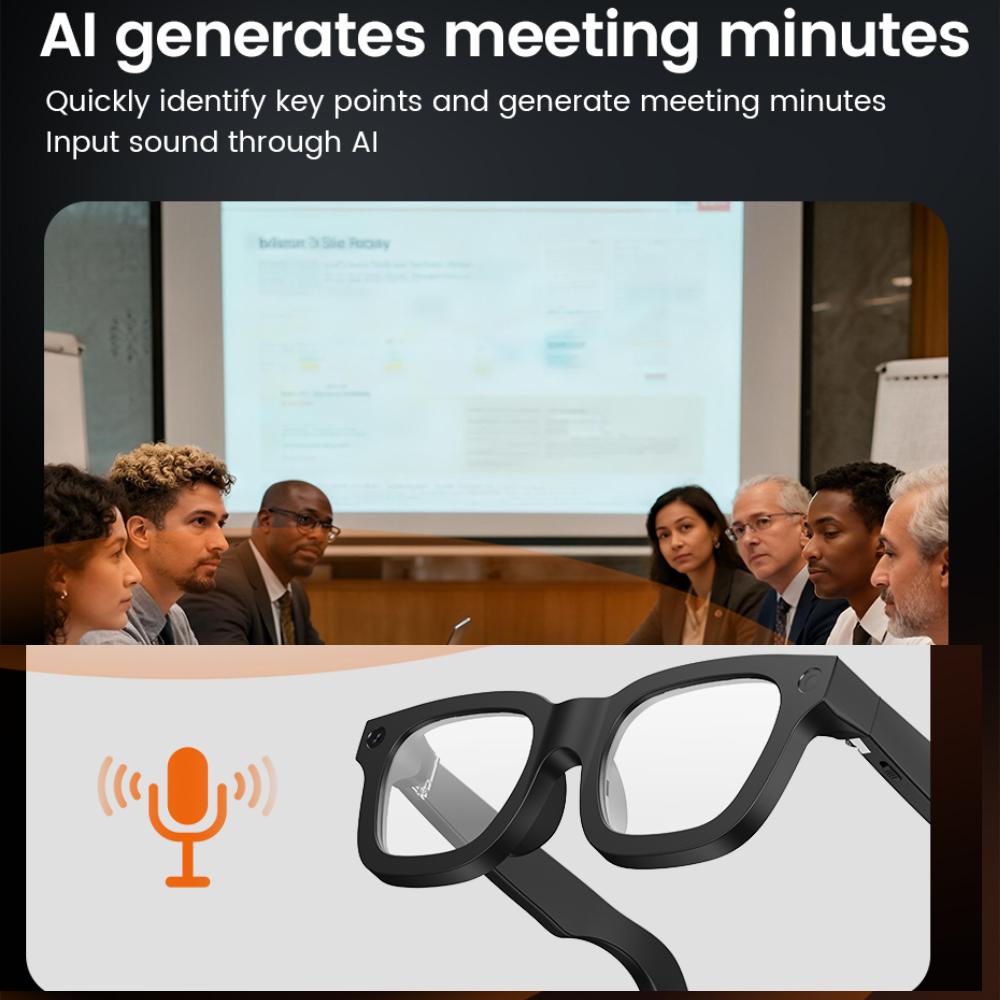 Introducing the AI Smart Glasses, featuring real-time translation and 800W camera. These eyewear offer Bluetooth calls, video, and music playback. Perfect for men and women, they integrate cutting-edge technology for a redefine visual experience. The glasses support Wi-Fi transmission and come with software anti-shake algorithm.