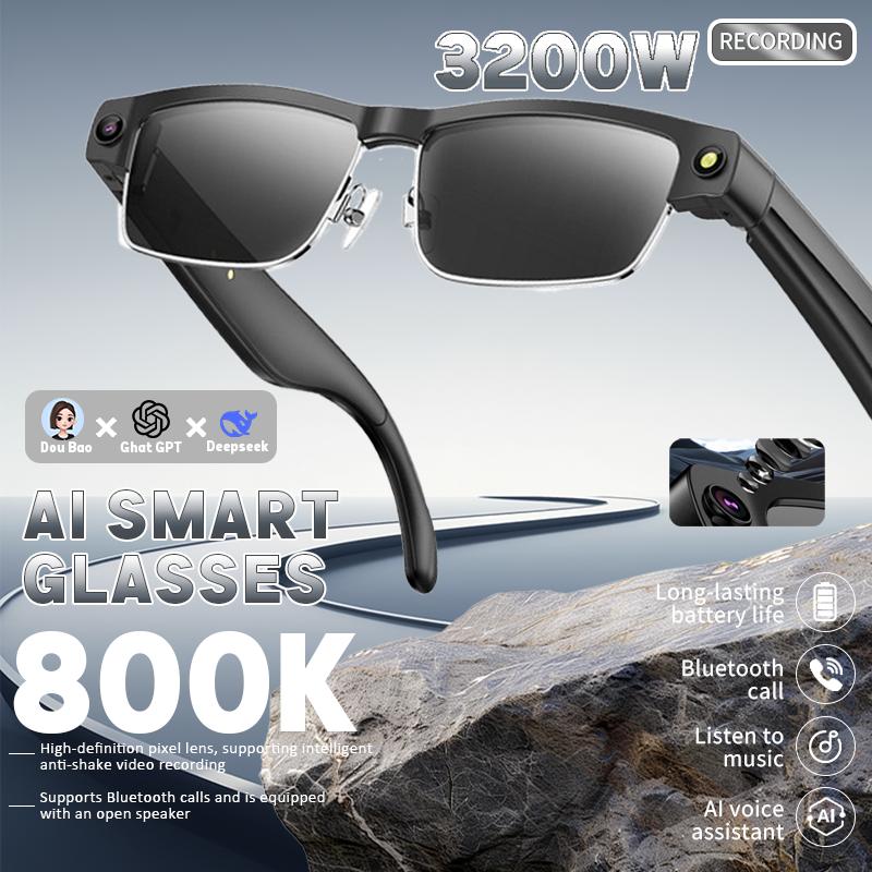 Smart Glasses With Wifi Transmission Dual Microphone Call Noise Reduction Ai Translation 8 Million Pixels Bluetooth Calling