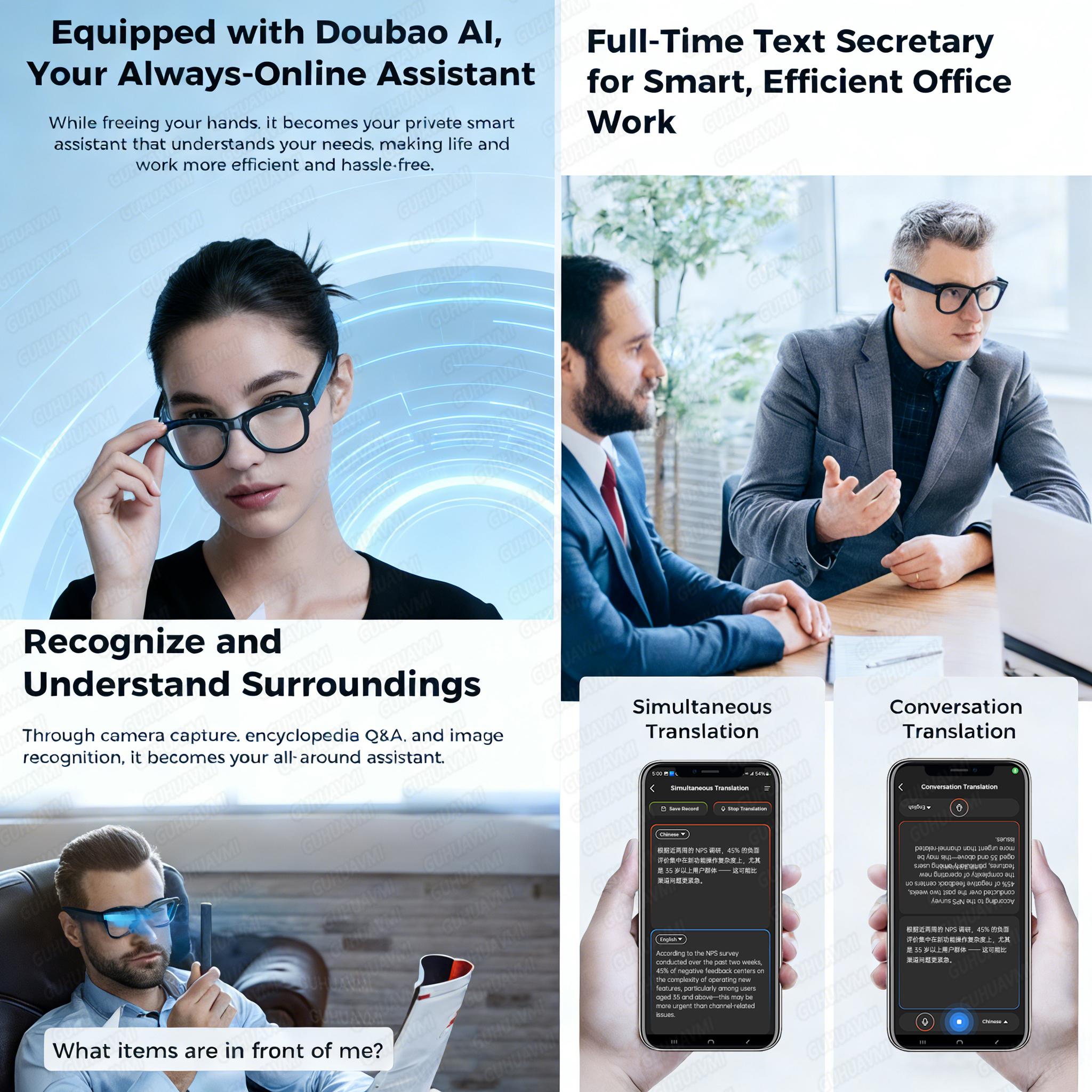 2026 Smart AI Glasses 1080P HD Camera M02 Ultra ChatGPT 3600mAh Charging Case Power Bank 32GB Translation Music Video Sunglasses