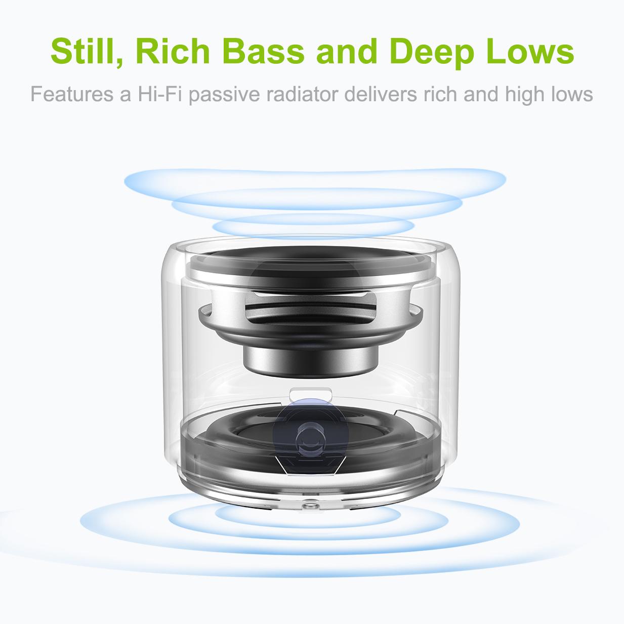 Innovation- Driver: Custom-made high-performance 3W neodymium driver- Passive Radiator: Downward passive radiator for miraculous power in the middle-range and bass
