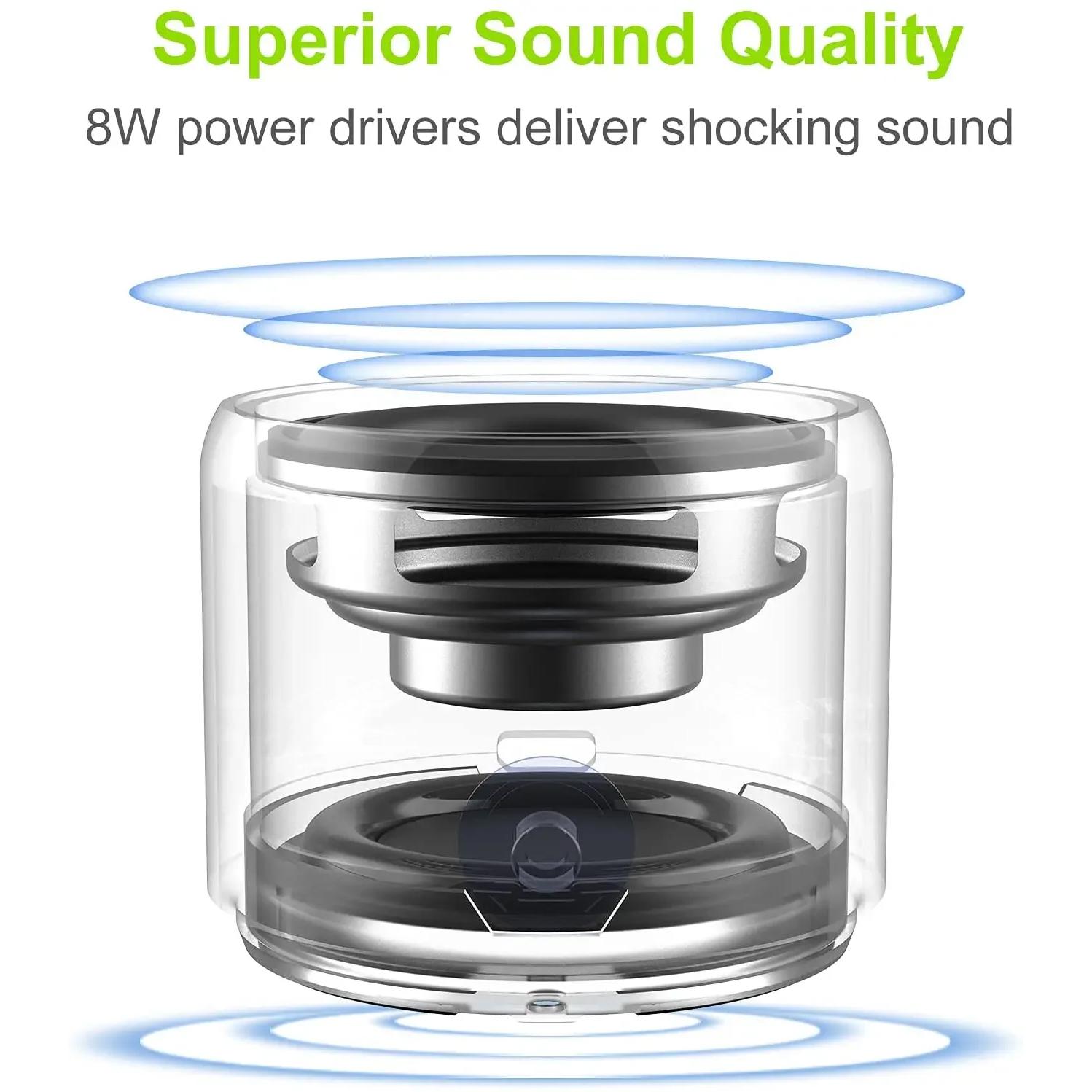 Louder Volume - 8W of audio power and passive subwoofer power for Bluetooth loud speaker, ensures powerful sound and pounding bass.