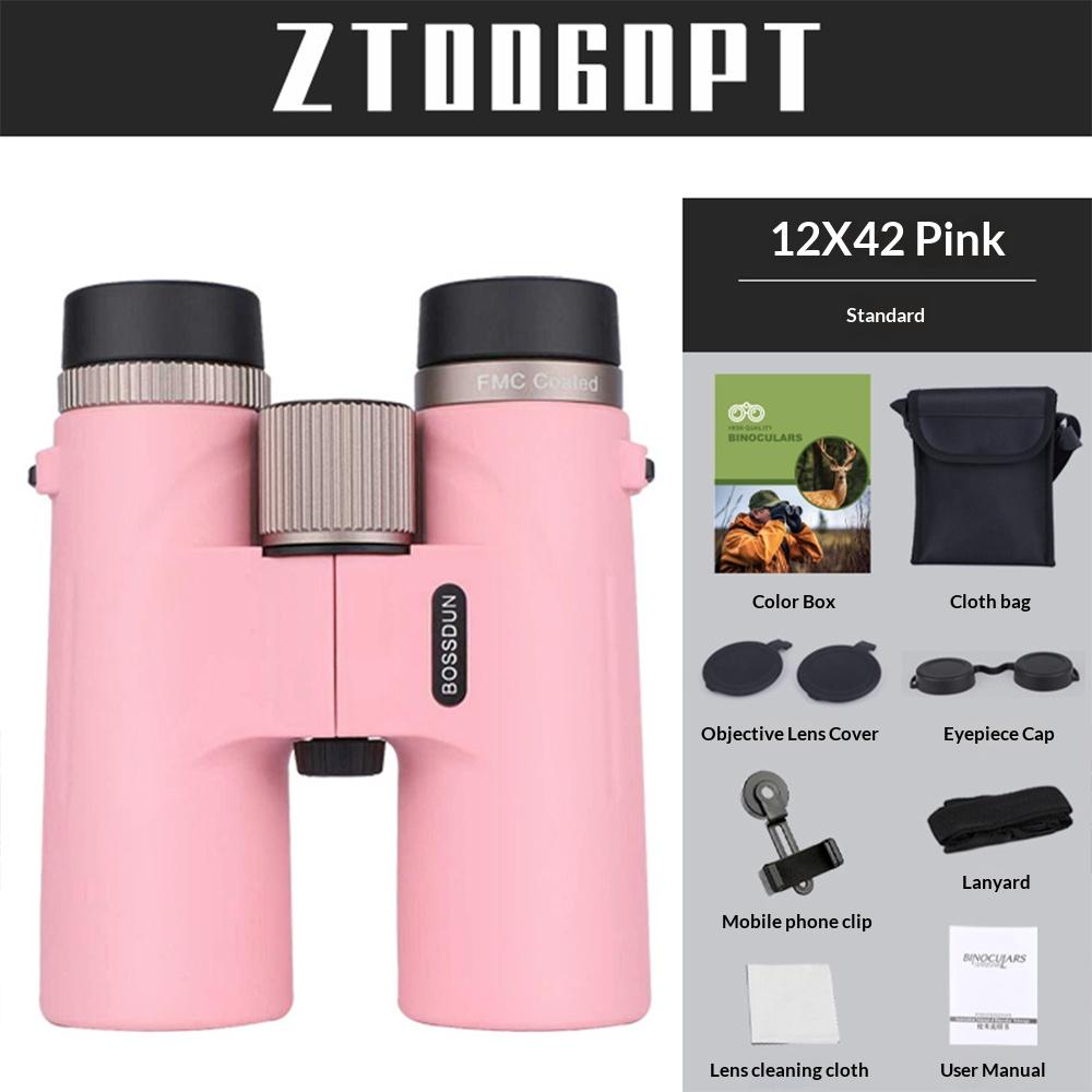BOSSDUN 12x42 HD Binoculars with FMC Green Film, BAK4 Prism, Waterproof IPX6, 92m/1000m Wide View for Outdoor Bird Watching Hunt