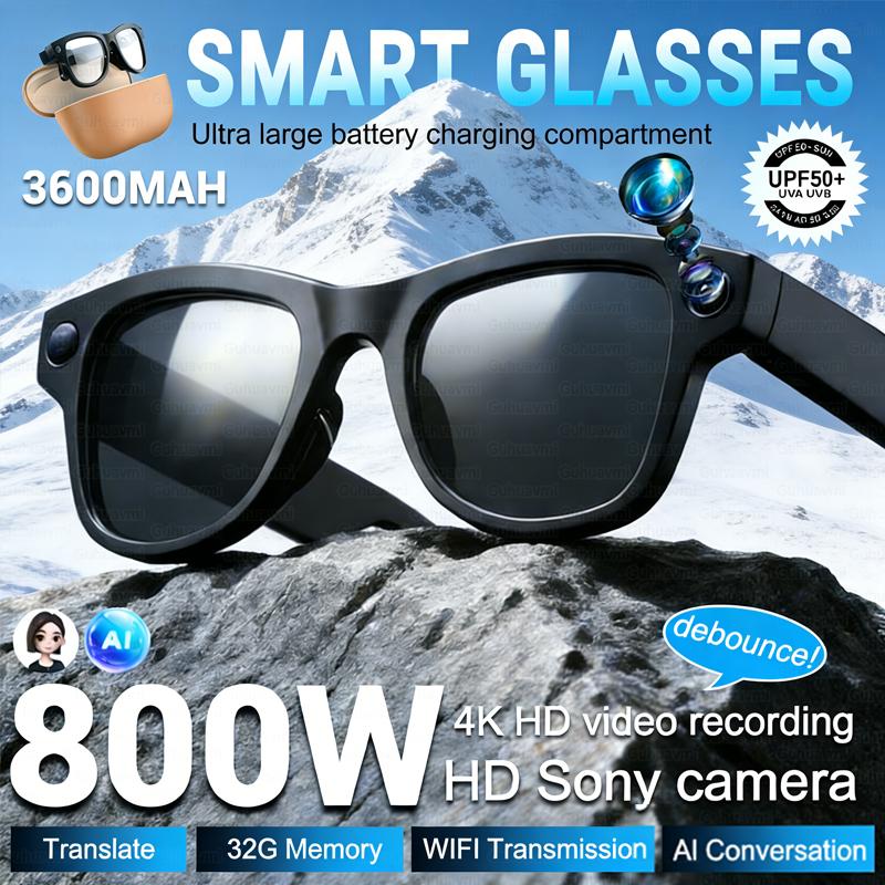 4K HD Recording Smart Glasses 800W HD Camera UPF50+UV Protection Sunglasses 32G Memory WIFI AI Translation 3600mAh Large Battery