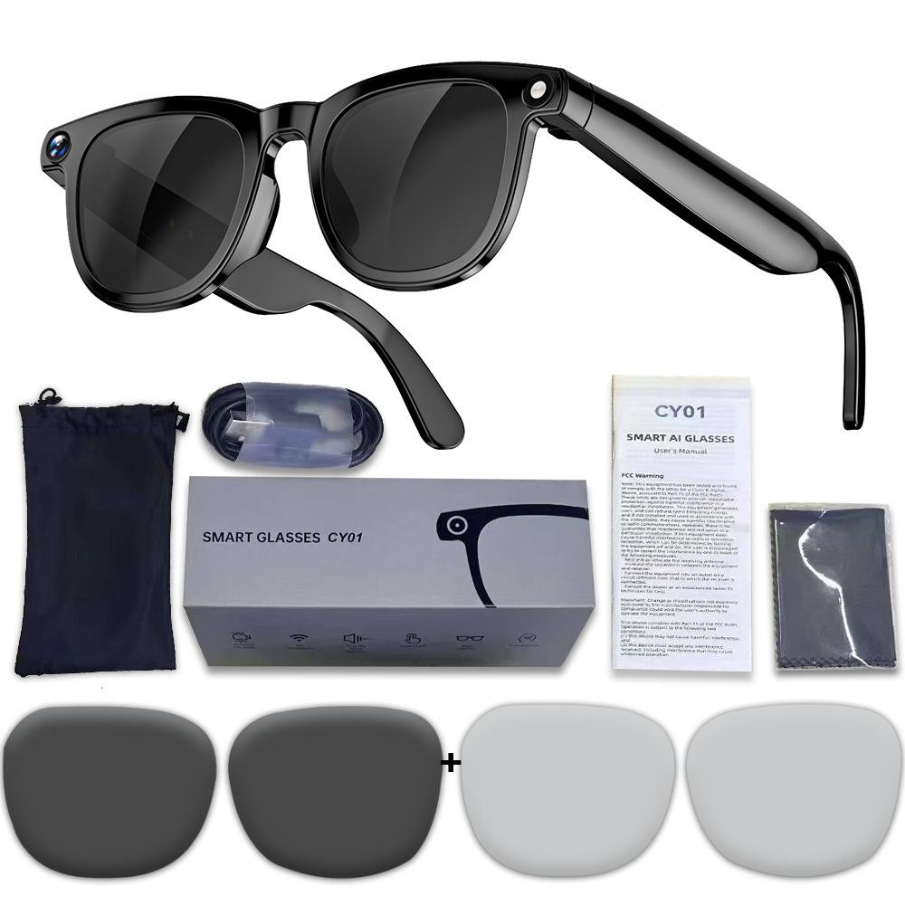 AI Smart Glasses 800W Pixel 2K HD Video Camera Outdoor Sport Sunglasses Open AI Voice Recording Call Translation Office glasses