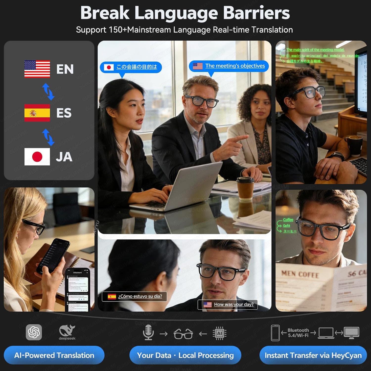 2026 Smart Glasses Men 4K 8MP HD Camera 150+Language Translation ChatGPT WIFI Video Recording Bluetooth CallAudio Glasses Women